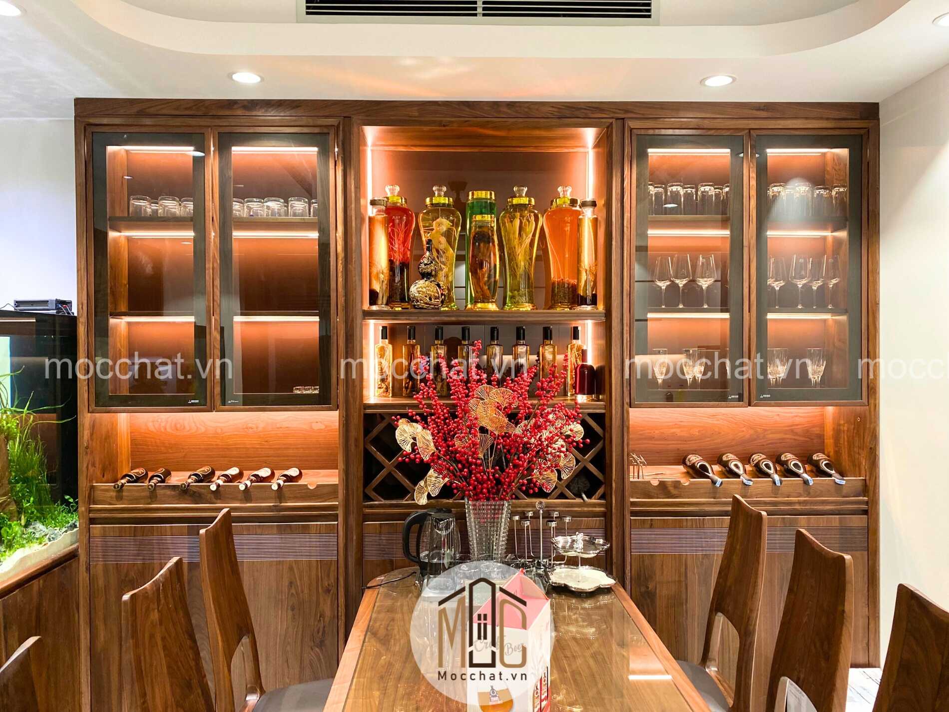 Tuy tủ rượu gỗ óc chó không phải là món đồ nội thất thiết yếu như sofa, bàn ghế phòng ăn, giường ngủ trong mỗi gia đình nhưng với xu hướng phát triển hiện nay, nhu cầu sử dụng tủ rượu ngày càng tăng. Tủ rượu là nơi lưu trữ, trưng bày những chai rượu quý đồng thời thể hiện cá tính, gu thẩm mỹ độc đáo của gia chủ. Khi lựa chọn tủ rượu làm từ gỗ óc chó TROC-03 tại nội thất Mộc Chất sẽ giúp Quý Khách hàng nâng tầm không gian nội thất đẳng cấp, bền đẹp theo thời gian.